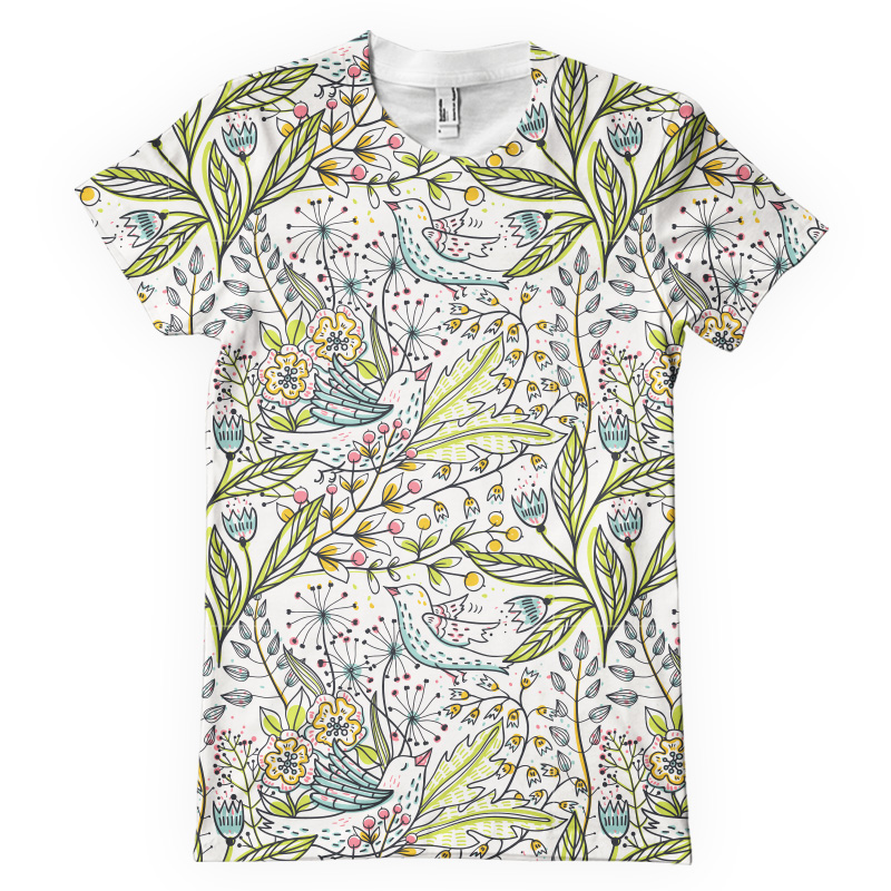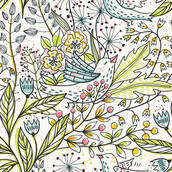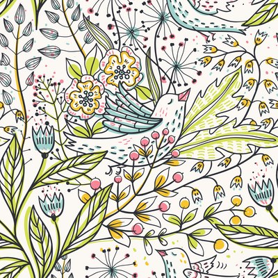 Vector floral seamless pattern with cute birds and blooming flowers.This image is a vector illustration and can be scaled to any size without loss of resolution. This image will download as a .eps file.
