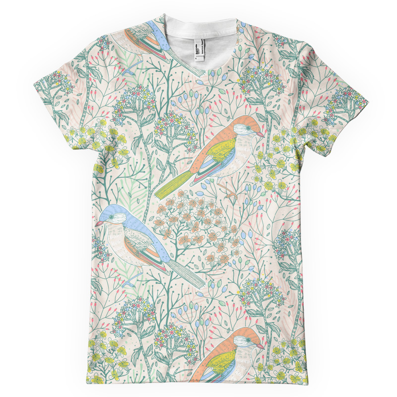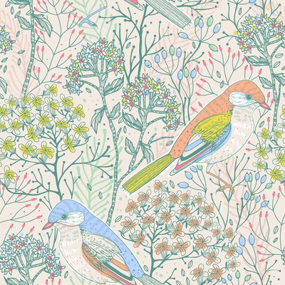 Vector floral seamless pattern with birds and blooming plants.This image is a vector illustration and can be scaled to any size without loss of resolution.This image will download as a .eps file.