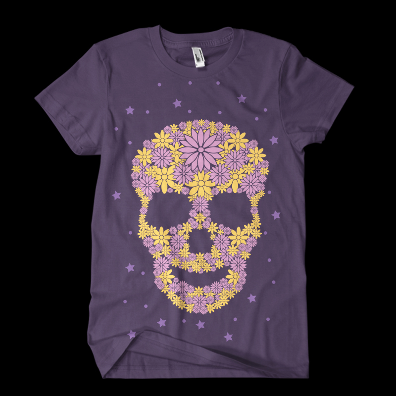 Flowers Skull urban and cool t shirt,for skull lovers,for Adobe Illustrator, Adobe Photoshop and can be used for digital printing and screenprinting . Ready to print