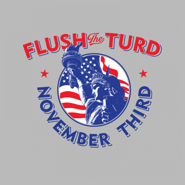 This design “Flush the turd” is made in Adobe Ilustrator is ready for print.