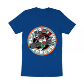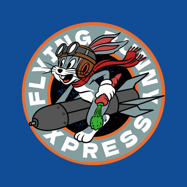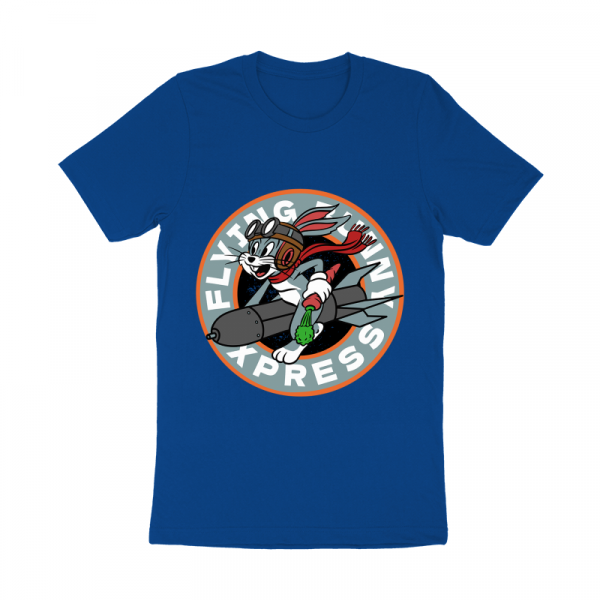 This design “ flying bunny express ” is made in Adobe Ilustrator is ready for print.