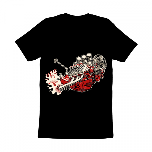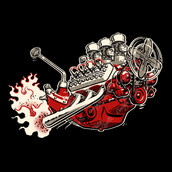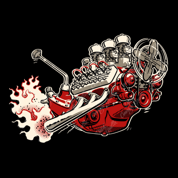 Flying “Henry’s Finest” flattie - 24 stud flathead V8 engine - cartoon - vector illustration