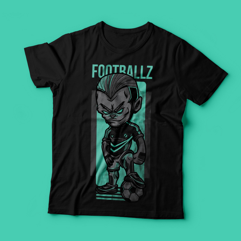 Footballz its a Character Design that was made in adobe illustrator. Based on vector file , easy to resize and edit. File features AI, EPS, and PNG all in zip, CMYK color mode and 4 color. Can be used for digital printing and screen printing.