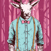 Forest hipster T-shirt design featuring a detailed deer dressed in a shirt and suspenders The files available are suitable for Adobe Photoshop. Files are available in eps (the CS version) and psd format.