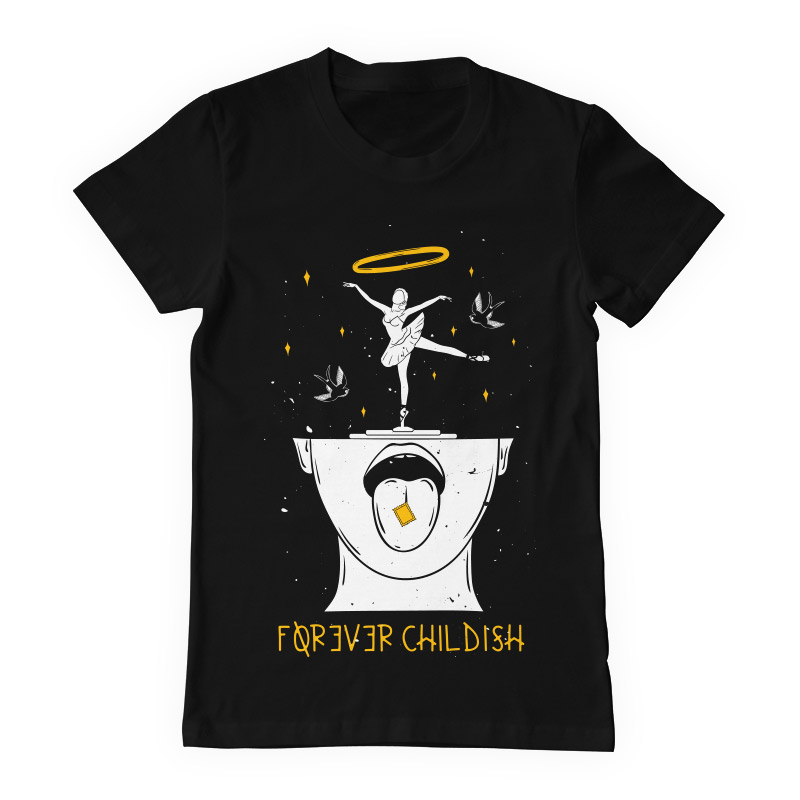 "Forever childish" design is available in high quality files, such as Ai,EPS, PDF and PNG. Vector files are organized on separate layers and all elements are editable. Can be used for both digital (DTG) and screenprinting.