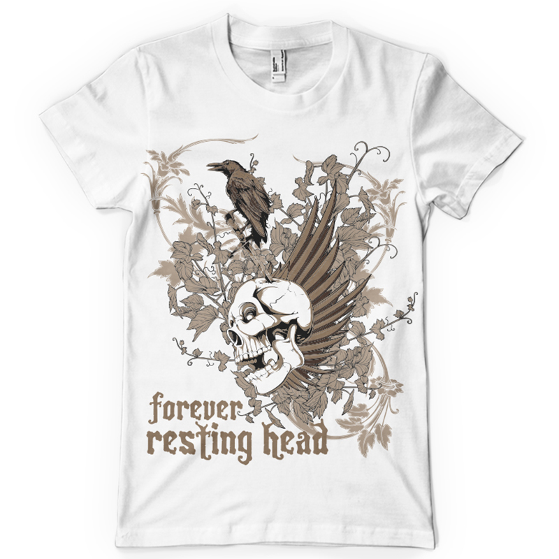 Forever resting head printed t-shirt features a detailed screen print of death is now available in EPS format file and can be used for digital printing and screenprinting . Ready to print or use in anything you want.