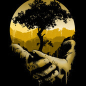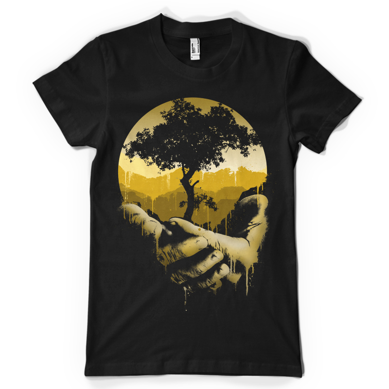 A unique illustration of a man holding a melting tree and a sunset which conveys a meaningful and inspirational approach to nature / environment. This design is 17" x 24" in size with a 300 high resolution.