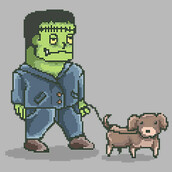 Franken Dog. The combination of frankenstein zombie walking with a cute dog. Dead to Live Again or Live To Dead? This design inspired from the classic horror / zombie game tittle with pixel art style artwork.