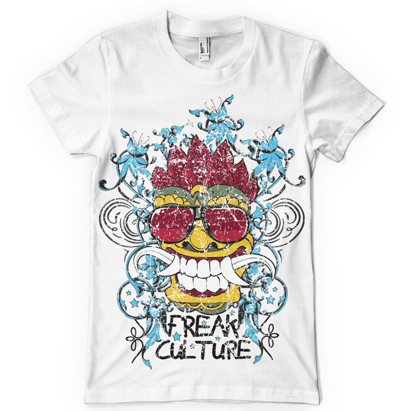 Freak culture printed t-shirt features a detailed screen print of dragon mask smiling is now available in EPS format file and can be used for digital printing and screenprinting . Ready to print or use in anything you want.