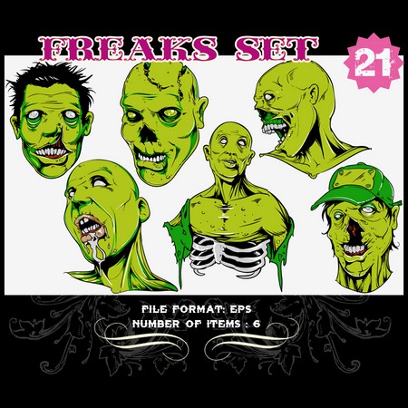 Freaks are here to feed your darkest design dreams and horror ideas. Our vector offer you a wide range of possibilities – monsters, creatures, zombies or deformed animals - all very useful when it comes to designing for rock bands, motorcycles clubs, CD covers and posters. It's a combination of many different styles and textures to bring you some awesome EPS vector files that will rock forever.