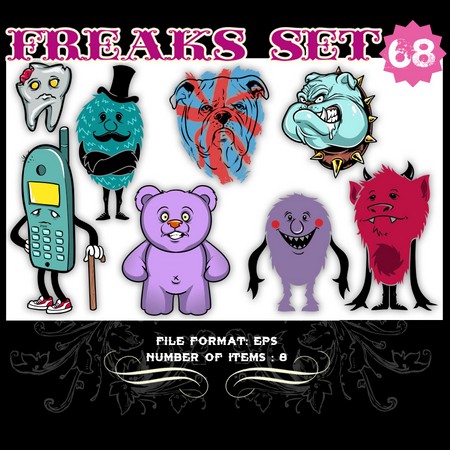 Freaks are here to feed your darkest design dreams and horror ideas. Our vector offer you a wide range of possibilities – monsters, creatures, zombies or deformed animals - all very useful when it comes to designing for rock bands, motorcycles clubs, CD covers and posters. It's a combination of many different styles and textures to bring you some awesome EPS vector files that will rock forever.