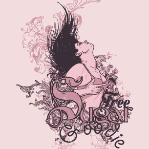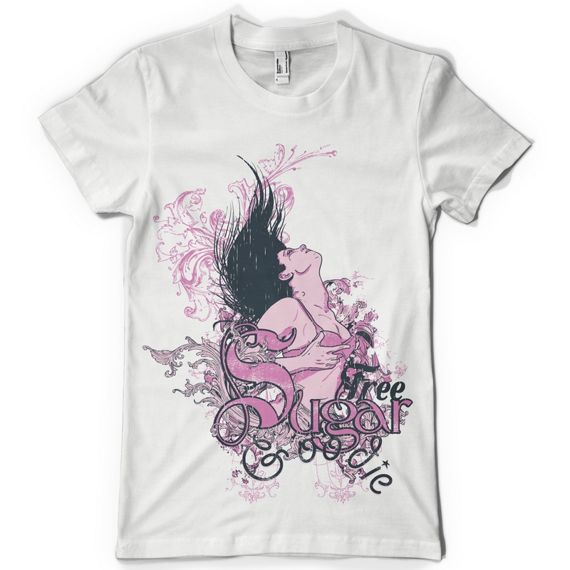 Free sugar T-shirt design in vector format, featuring detailed sexy girl now available for Adobe Illustrator, Adobe Photoshop and Corel Draw and can be used for digital printing and screenprinting .