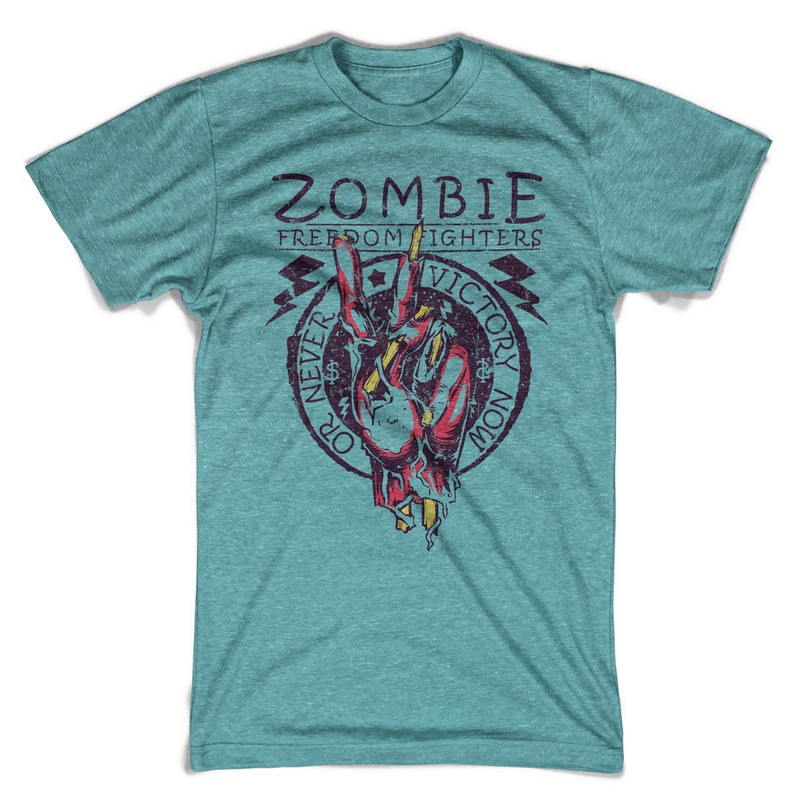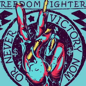 Freedom fighter graphic design template in vector format, featuring detailed peace zombie hand now available for Adobe Illustrator, Adobe Photoshop and Corel Draw and can be used for digital printing and screenprinting .