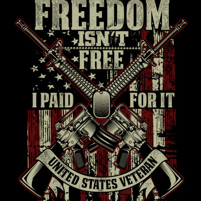 "Freedom Isn't Free, I Paid For It." Design Created with Corel X6 And Adobe Illustrator, Two Color Design, Can Be Used For Digital printing or screen prrinting...:)Enjoy