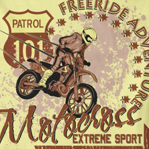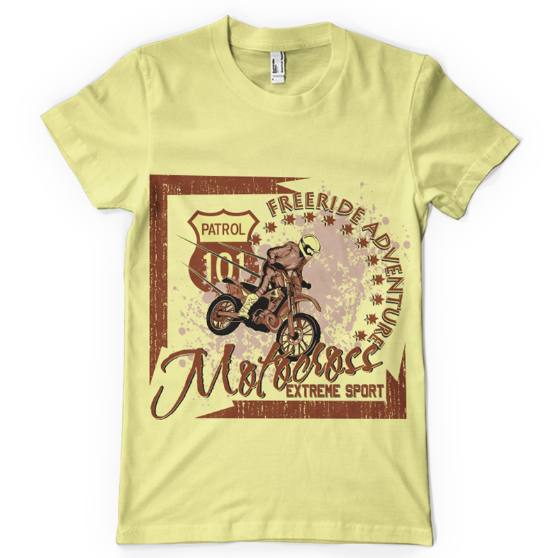 Freeride adventure printed t-shirt features a detailed screen print of motocross racer now available for Adobe Illustrator, Adobe Photoshop and Corel Draw and can be used for digital printing and screenprinting . Ready to print or use in anything you want.