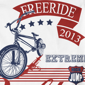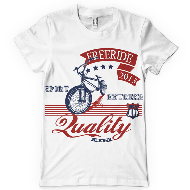 Freeride bike printed t-shirt features a detailed screen print of bicycle is now available in EPS format file and can be used for digital printing and screenprinting . Ready to print or use in anything you want.