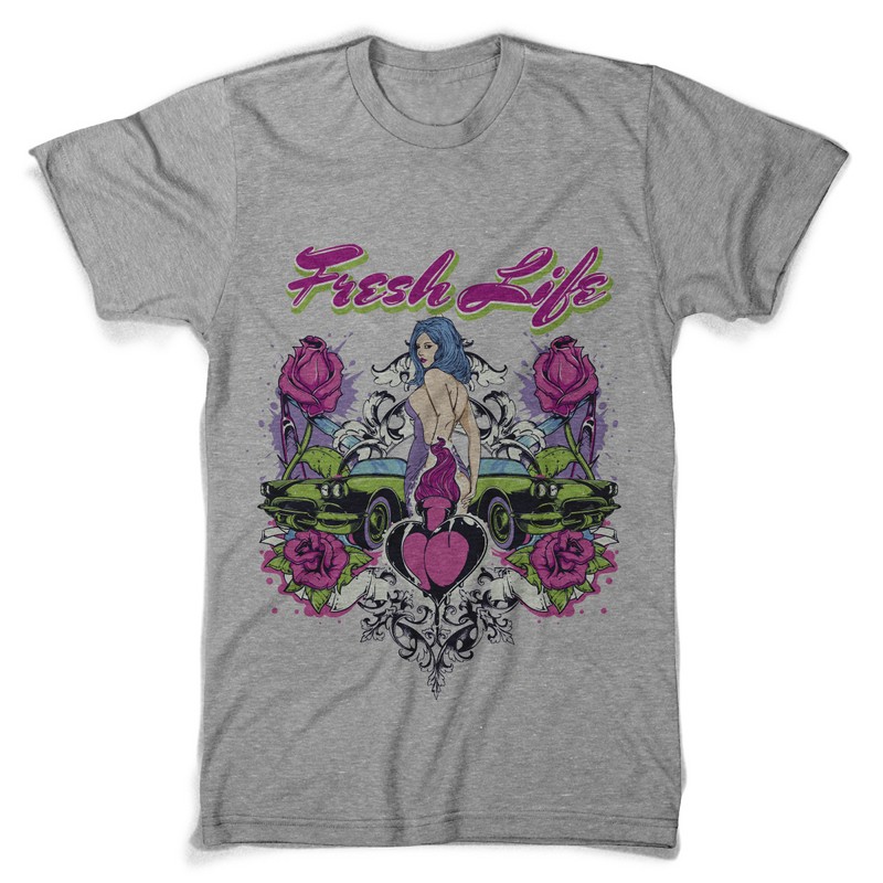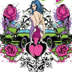 Fresh life digital design template in vector format, featuring detailed sexy girl and cars now available for Adobe Illustrator, Adobe Photoshop and Corel Draw and can be used for digital printing and screenprinting .