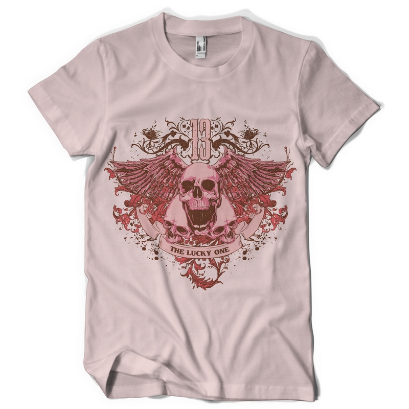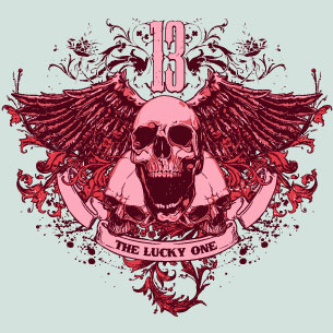 It's 13 and Friday? Well, you should wear this t-shirt design featuring detailed skull with wings screaming, a lot of blood, flourish details and elements of death. Available in vector format for Adobe Illustrator, Adobe Photoshop and Corel Draw and can be used for digital printing and screenprinting .