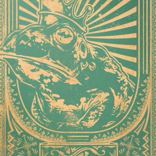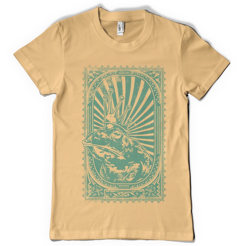 Frog king graphic design template in vector format, featuring detailed framed frog king now available for Adobe Illustrator, Adobe Photoshop and Corel Draw and can be used for digital printing and screenprinting .