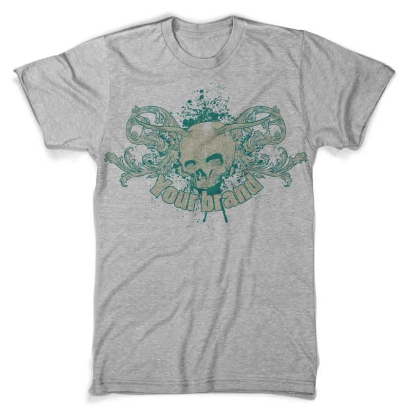 Digital design featuring detailed skull, where you can easily add your brand. Frown t-shirt template is available in vector format and can be used for digital printing and screenprinting. The file will be available for Adobe Illustrator, Adobe Photoshop and Corel Draw.