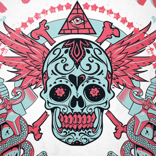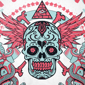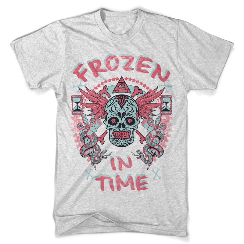 Digital design featuring detailed death sugar skull. Frozen in time template is available in vector format and can be used for digital printing and screenprinting. The file will be available for Adobe Illustrator, Adobe Photoshop and Corel Draw.