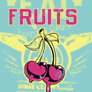 Fruits graphic design template in vector format, featuring detailed cherry angel now available for Adobe Illustrator, Adobe Photoshop and Corel Draw and can be used for digital printing and screenprinting .