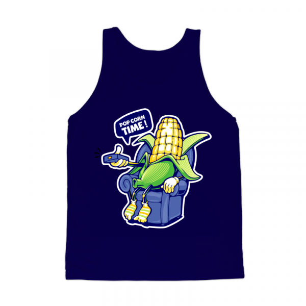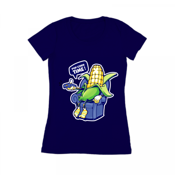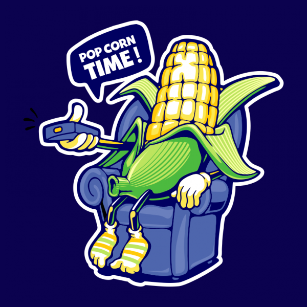 Funny cartoon popcorn watching TV at night on the