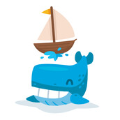Funny whale play with boat