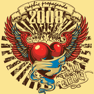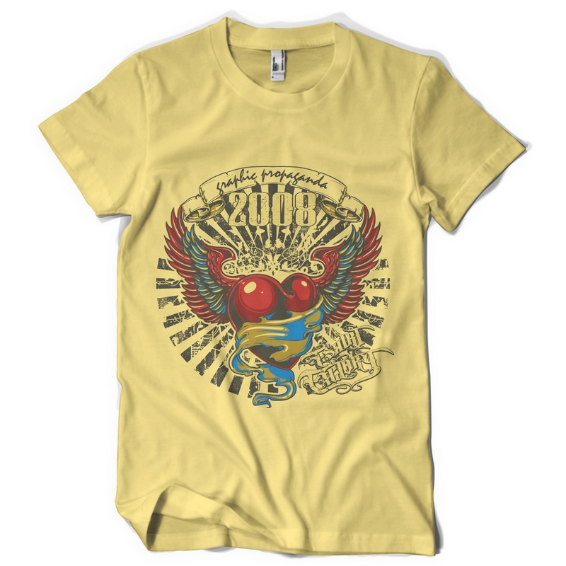 Galvanize T-shirt template in vector format, featuring detailed winged heart now available for Adobe Illustrator, Adobe Photoshop and Corel Draw and can be used for digital printing and screenprinting .