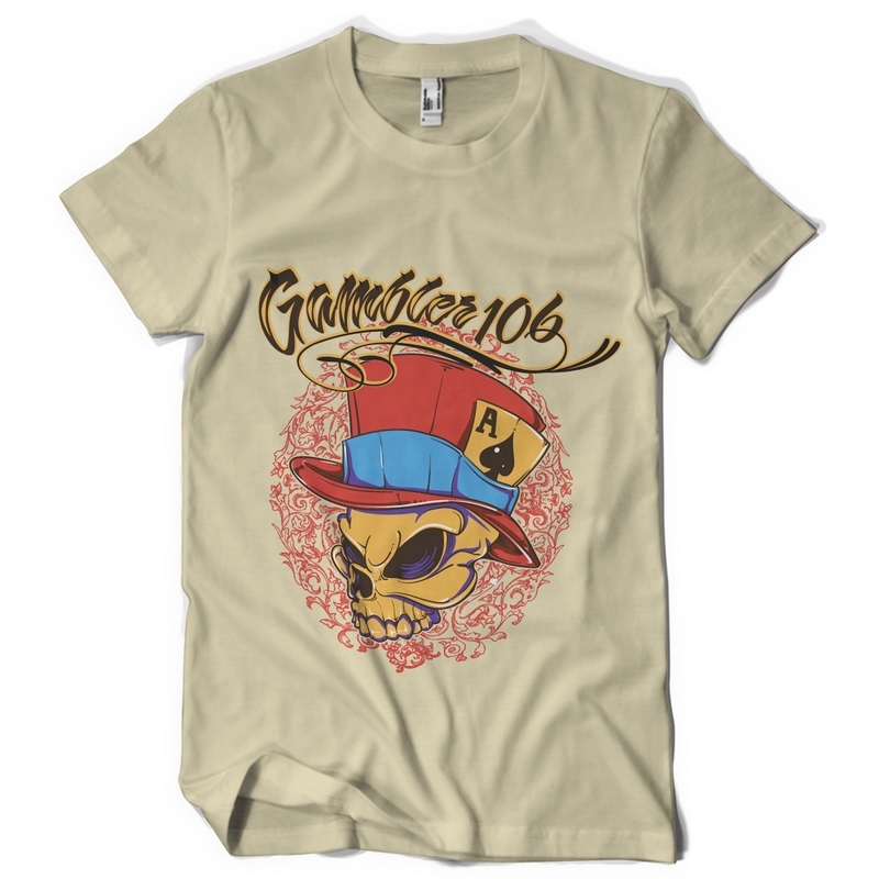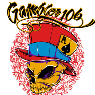 Gambler 106 graphic design template in vector format, featuring detailed skull gambler now available for Adobe Illustrator, Adobe Photoshop and Corel Draw and can be used for digital printing and screenprinting .