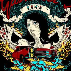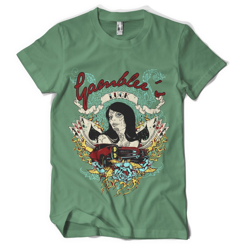 Gambler's luck graphic design template in vector format, featuring detailed tattoo girl now available for Adobe Illustrator, Adobe Photoshop and Corel Draw and can be used for digital printing and screenprinting .