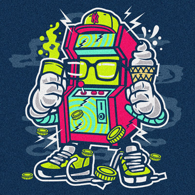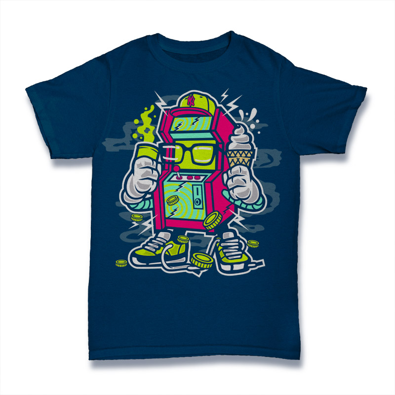 Game Machine Cartoon style T-shirt design template , The files are AI, CDR, PSD separated Layers. Can be used for digital printing and screen printing.