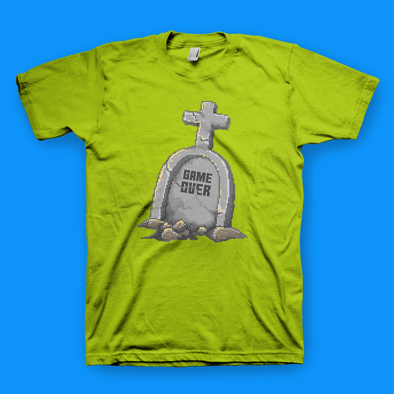 Game Over pixel art artwork. Inspired from the retro video game pixel art mixed with menu on video games console. This illustration made with pixel art style.