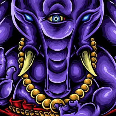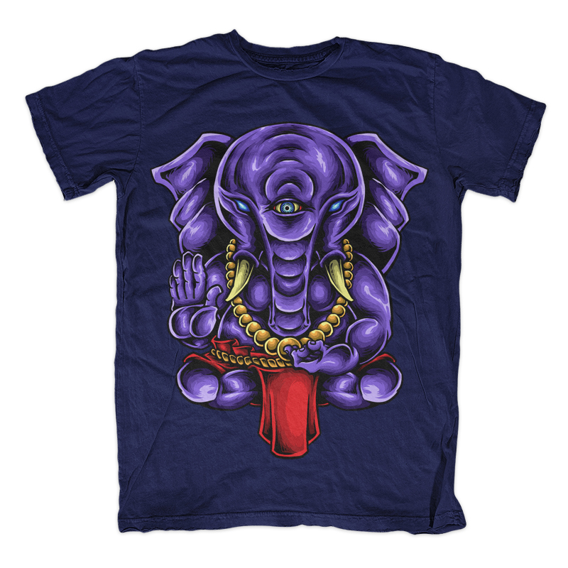 Illustration of ganesha lord in hindhuism with cartoon looking. Ready to print on t-shirt.