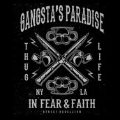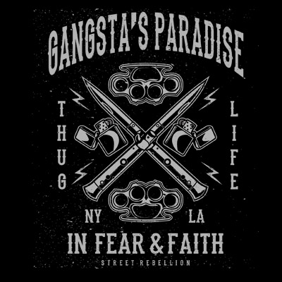 Gangsta's Paradise Tshirt Design Template based on vector files , such as AI and CDR also with PSD separated Layers file, the design has 1 color print, it can be used for digital printing and screen printing.