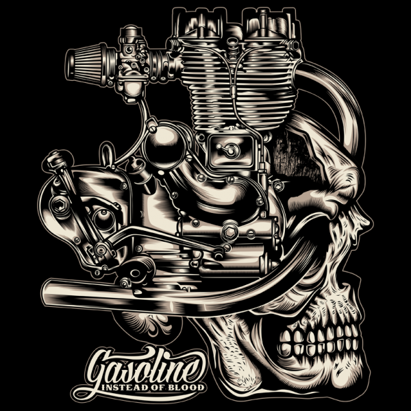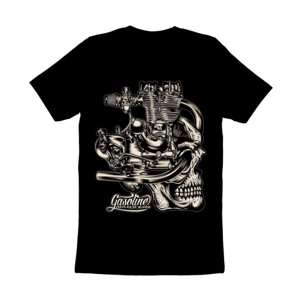 “Gasoline Instead Of Blood Skull” T-Shirt was created with Corel Draw and Adobe illustrator, two color print, CDR,AI,PNG,EPS Can be used for digital printing and screen printing