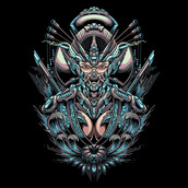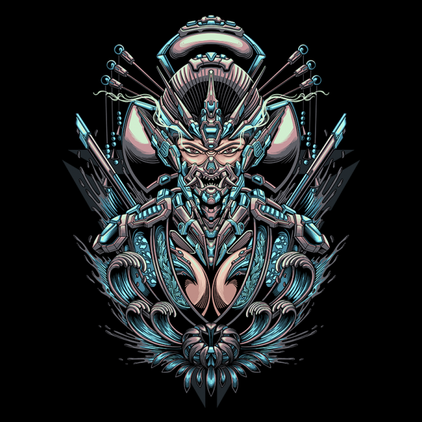 I present an illustration of a geisha with a robot and mecha theme, which makes it very unique and will definitely be very cool if you wear the t-shirt, please try it, thank you