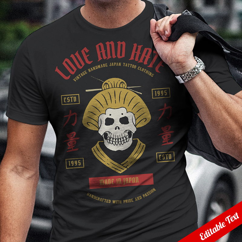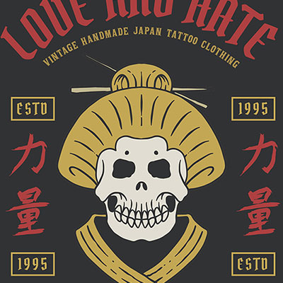Vector illustration of an ancient japanese woman skull with kimono. Ready to print on t-shirt.