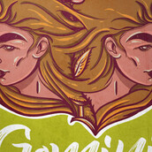 Gemini- design featuring detailed portrait of a girl. This illustration was made in Ilustrator, the source file is avaible in PNG,AI,EPS,SVG format and can be used for screenprinting , digital print and tshirt design. Not editable text.