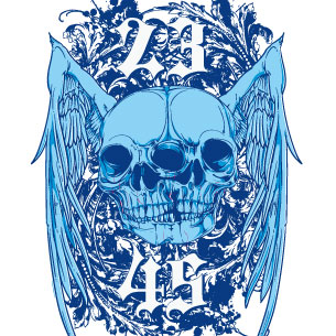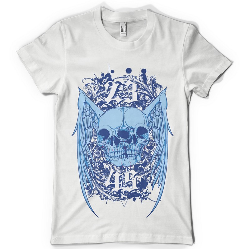 Gemini wings digital design template in vector format, featuring detailed gemini skulls now available for Adobe Illustrator, Adobe Photoshop and Corel Draw and can be used for digital printing and screenprinting .