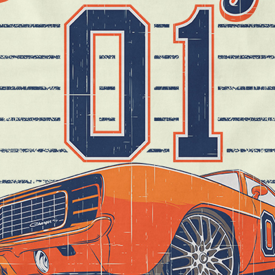 General Lee design features a Muscle Car detailed screen print now available for Adobe Illustrator, Adobe Photoshop and Corel Draw and can be used for digital printing and screenprinting