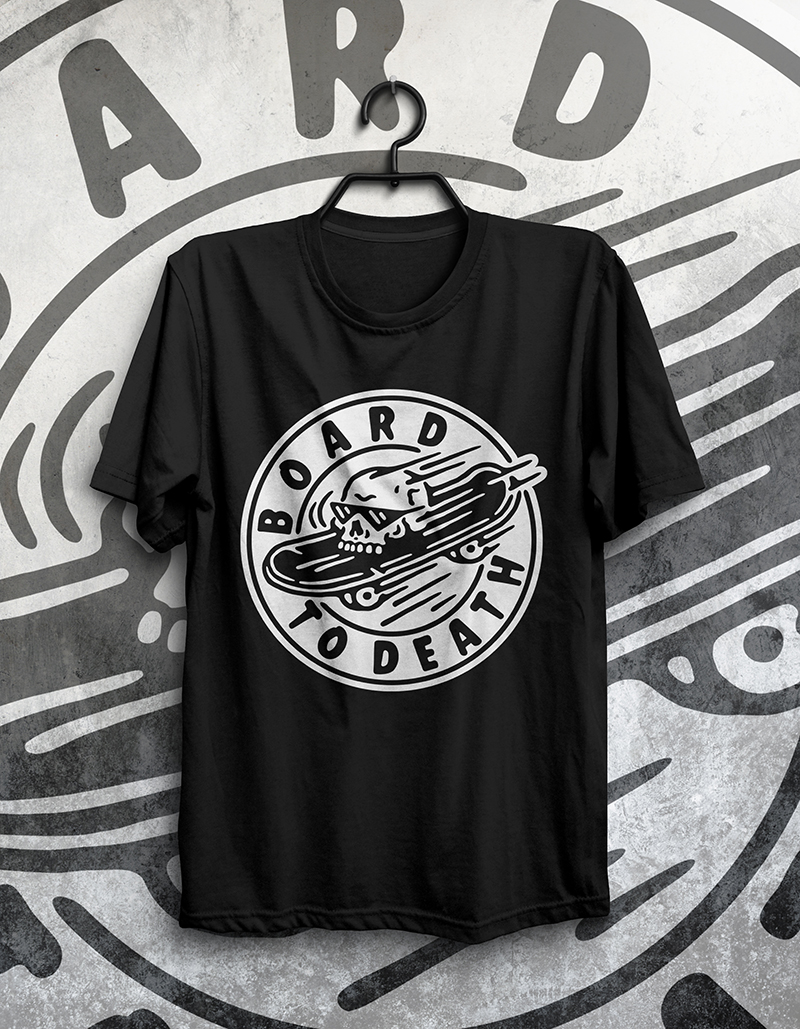 Board to death is a vector design. The files imcluding Ai, EPS and PNG with transparent background. Perfect for both digital print and screen printing.