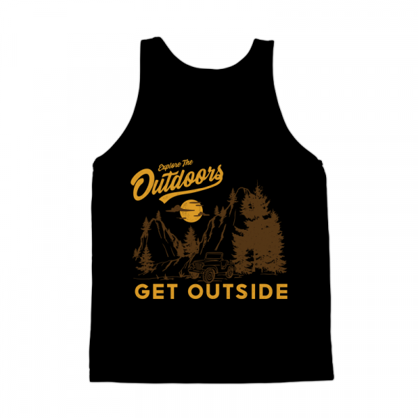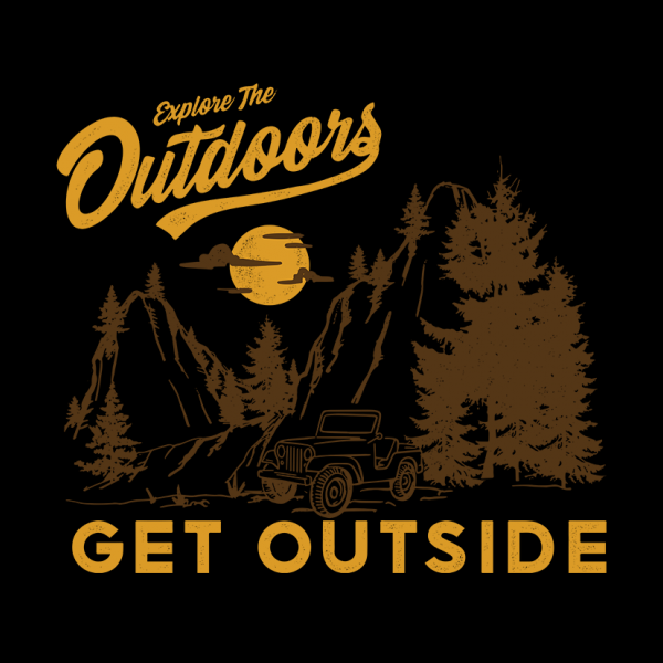 This design “ get outside ” is made in Adobe Ilustrator is ready for print.