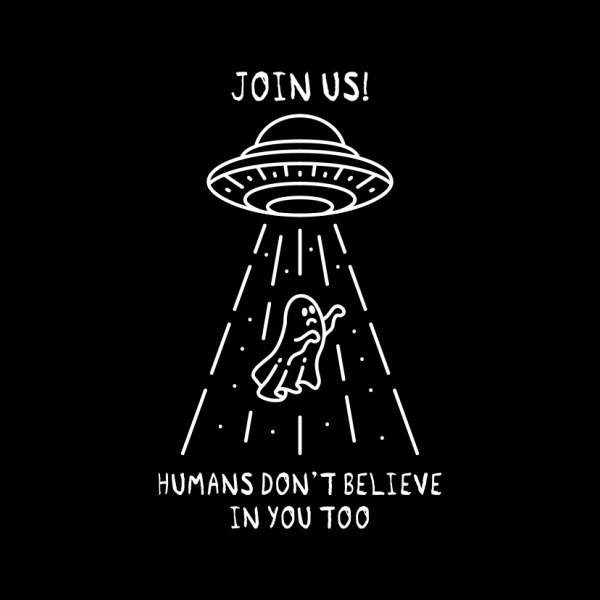 Ghost and Alien is a monoline illustration that is suitable for apparel or merchandise about alien, nasa, ufo, astronaut, galaxy, space, universe, planet, ghost, horror, halloween, trick or treat, meme, funny, humor.