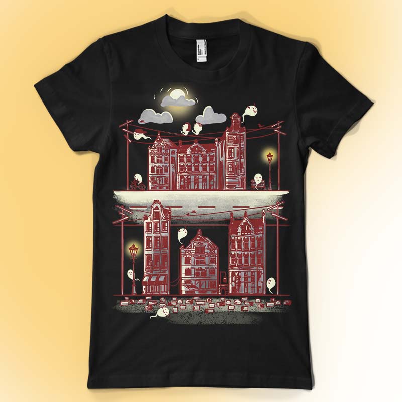 Ghost town is an illustration made in Adobe Photoshop,featuring a town full of funny ghost.It can be used on digital printing,screen printing and T-shirt design and it is available in PSD and PNG format file.