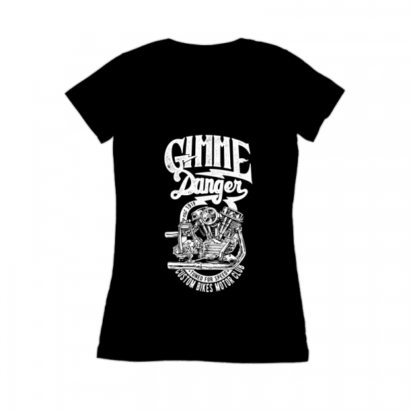 "GimmeDanger2" T-shirt design featuring typography style quote. The files available are suitable for Adobe Illustrator and Adobe Photoshop and can be used for digital printing and screen-printing.