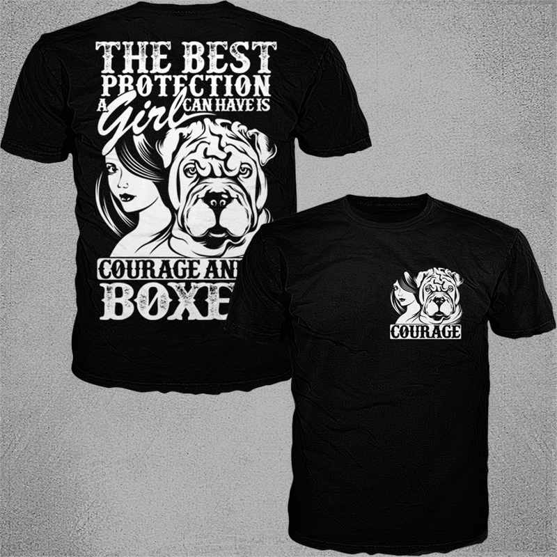 Girl and Boxer is editable vector Words are separated. so words, colors and size easy editable for any shirt colors.