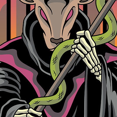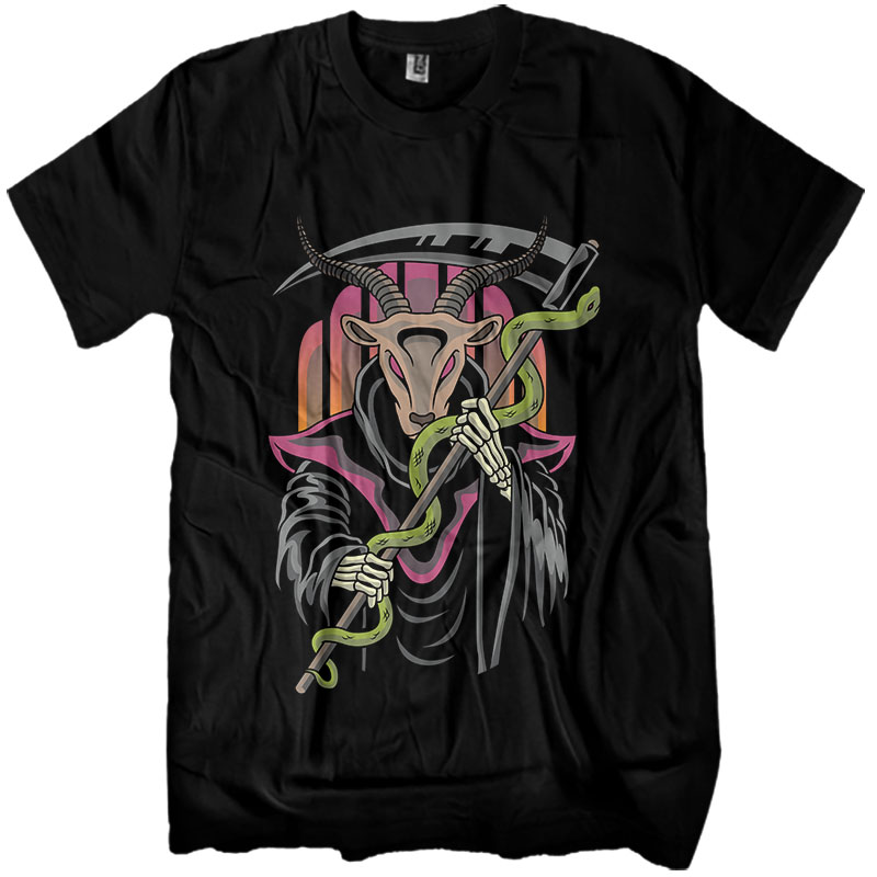 Goad is mixed character between baphomet and grim reaper. Artwork available in AI, EPS and PNG format, vector file with layer, The file can be used for digital printing and screenprinting needed.