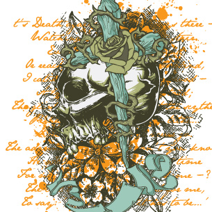 Digital design featuring detailed skull and cross with roses. God is our hope template is available in vector format and can be used for digital printing and screenprinting. The file will be available for Adobe Illustrator, Adobe Photoshop and Corel Draw.