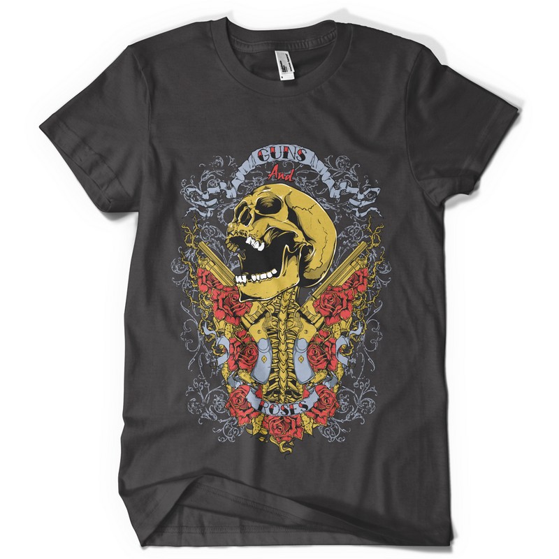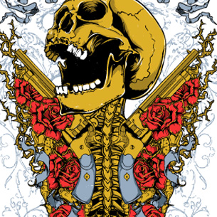 Golden digital design template in vector format, featuring detailed screamig golden skull now available for Adobe Illustrator, Adobe Photoshop and Corel Draw and can be used for digital printing and screenprinting .